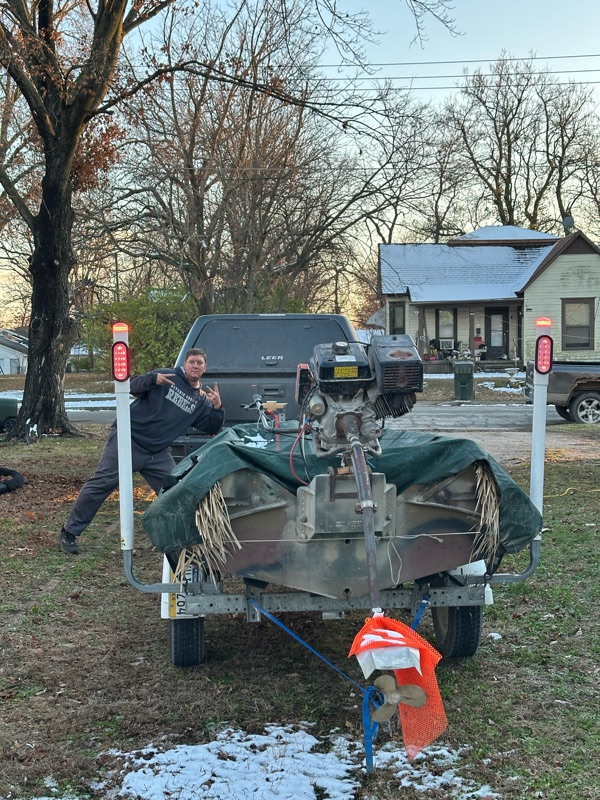 On Tuesday afternoon we got the trailer taillights rewired & everything made roadworthy again. As you can see below, Dan was very proud!