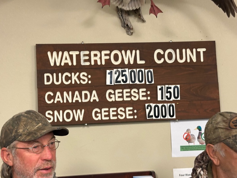 We tried our luck (& were successful) at the daily drawing on Wednesday. We drew the 4th choice (out of ~45 groups). Unfortunately, this area doesn’t have blind sites; they award an allotted number of groups in each small area (~1000 acres each). With not knowing the area, when we boated in at 5am, the spot we picked turned out to not be very good - no shooting opportunities and we left at 1030. Although the report is a lot of ducks on this conservation area, it’s not resulting in many hunt able birds near us. There was some shooting in our Pool, but not much - so although our spot wasn’t great, it likely didn’t matter today.
